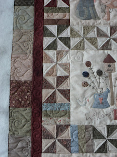 The cream and green triangles were stitched with designs called Oak Acorn block and triangle from Sweet Dreams Quilt Studio.